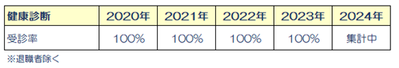 病気の早期発見・早期治療を促進するために、定期健診、禁煙外来、婦人科の乳がん検査(※年齢制限あり)、子宮頸がん検査を全額補助し、定期健康診断の重要性を社員へ周知し受診促進に努めています。
